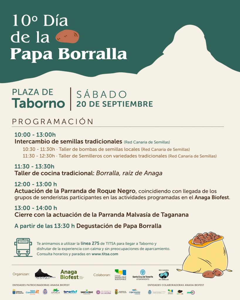 Dentro del marco del Anaga Biofest, el “Día de la Papa Borralla” celebra su décima edición con una programación pensada para toda la familia, el público curioso y los amantes de la gastronomía con raíces: