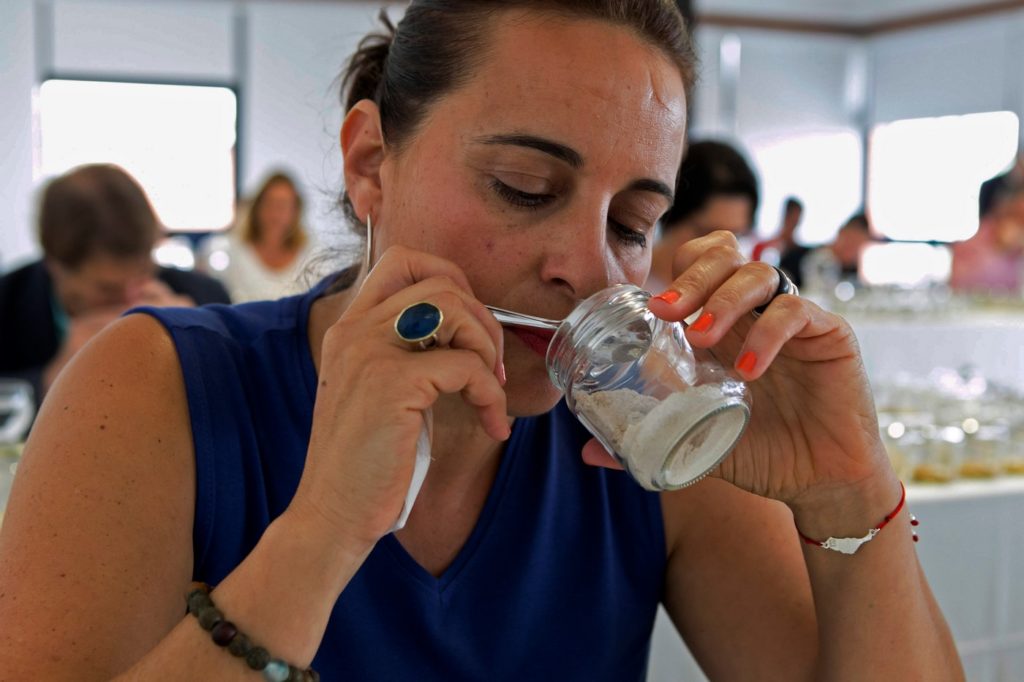 Las muestras se juzgan en seco en la fases visual y olfativa, y también mezclados con la misma proporción de agua- considerado un elemento neutro que no altera la propiedades del producto- en la fase gustativa. Antes y durante las sesiones se cuidan aspectos como la temperatura de la sala o que en la limpieza de ésta no se empleen productos que emanen olores fuertes, ya que son factores que influyen en las características del productos e interfieren en la forma en que éste se evalúa.