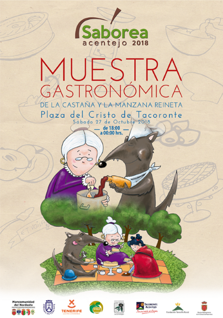 La niña que jugaba a ser Caperucita Roja, recogía manzanas reinetas y castañas para que su abuela preparara su famosa receta. Así comienza #SaboreaAcentejo2018. El sábado 27 de Octubre, desde las 6 de la tarde, en la plaza del Cristo en Tacoronte, comenzará esta historia donde aparecerá la niña junto con el narrador Fabio González, narrador ilustrador, para terminarnos de contar este cuento, dirigido por Diego G. Reinfeld.