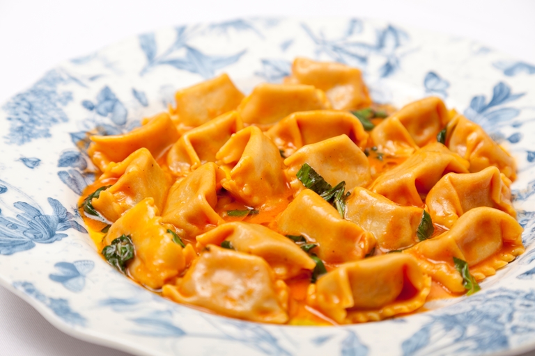 Uno de los platos estrella de Lime Wood’s Hartnett, Holder & Co, esta clásica receta de agnolotti pappa al pomodoro, inspirada en su época en la Toscana. “Siempre me ha gustado la Toscana”, explica. “Trabajar y viajar allí a lo largo de mi carrera ha jugado un gran papel en la influencia del menú y en la inspiración de los platos de Hartnett Holder & Co. De hecho, llamamos a los Agnolotti (pasta fresca a base de huevo) la pasta de un hombre rico, ya que es una versión más refinada de los ravioles de la región de Piamonte”.