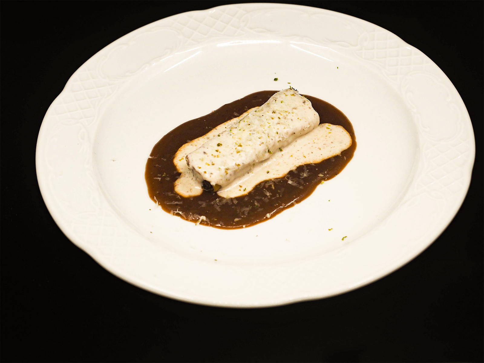 - Canelón de carrilleras con bechamel trufada.
