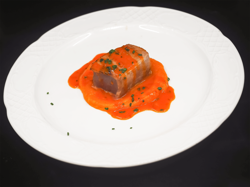 - Tataki de atún en mojo hervido y batata amarilla.