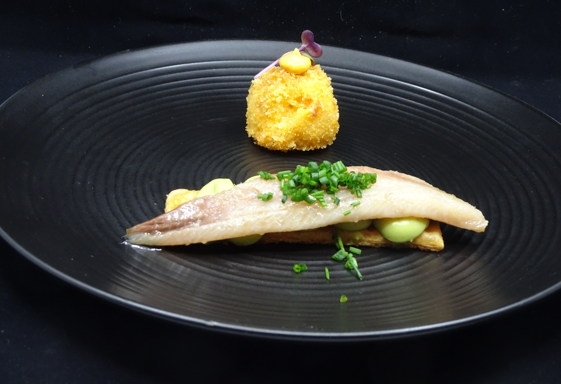 2. Croquetas de chorizo vasco a la brasa y Lingote hojaldrado de sardina ahumada.
