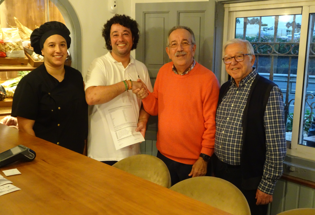 Mientras los 40 Amigos Canarios del Buen Comer disfrutábamos cada plato y vino, compartíamos nuestras opiniones y asignábamos una calificación. Esta puntuación se incorporaría al acta final para valorar cada uno de los puntos en nuestra agenda.