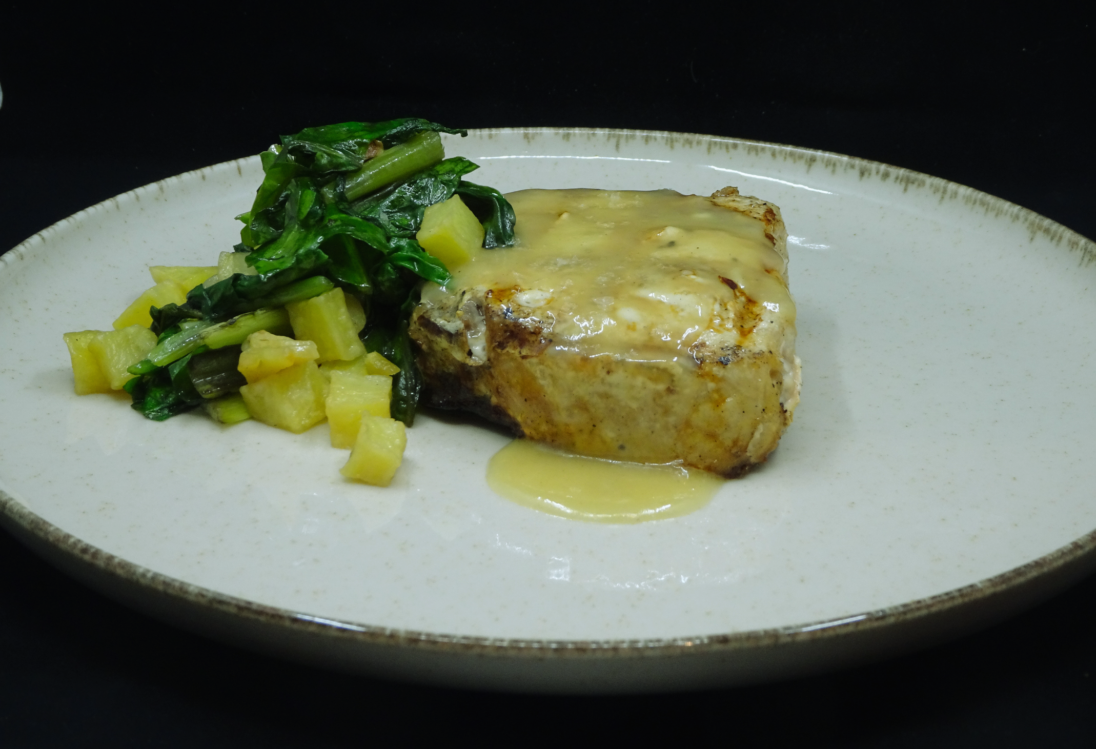5. Medregal, acelgas y jugo tostado de sus espinas.