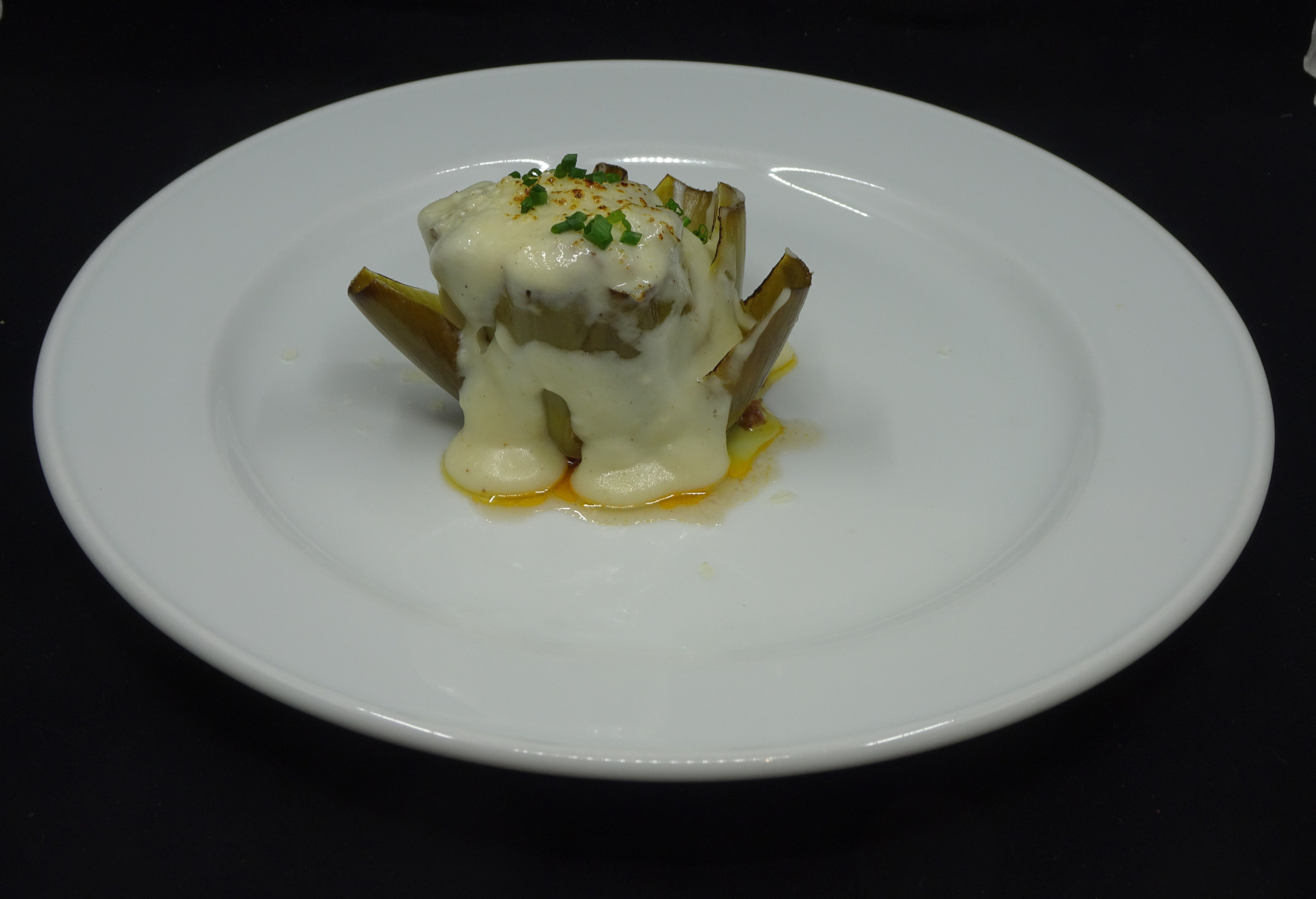 4. Alcachofa confitada rellena de rabo de vaca estofado.