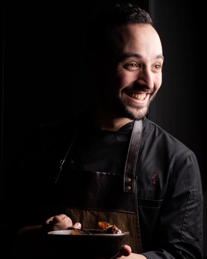 Incluso los postres rinden homenaje a la llama. Las peras cocinadas lentamente sobre brasas vivas desprenden un aroma a madera dulce, mientras el chocolate ahumado con caramelo salado deja una huella profunda, casi adictiva.