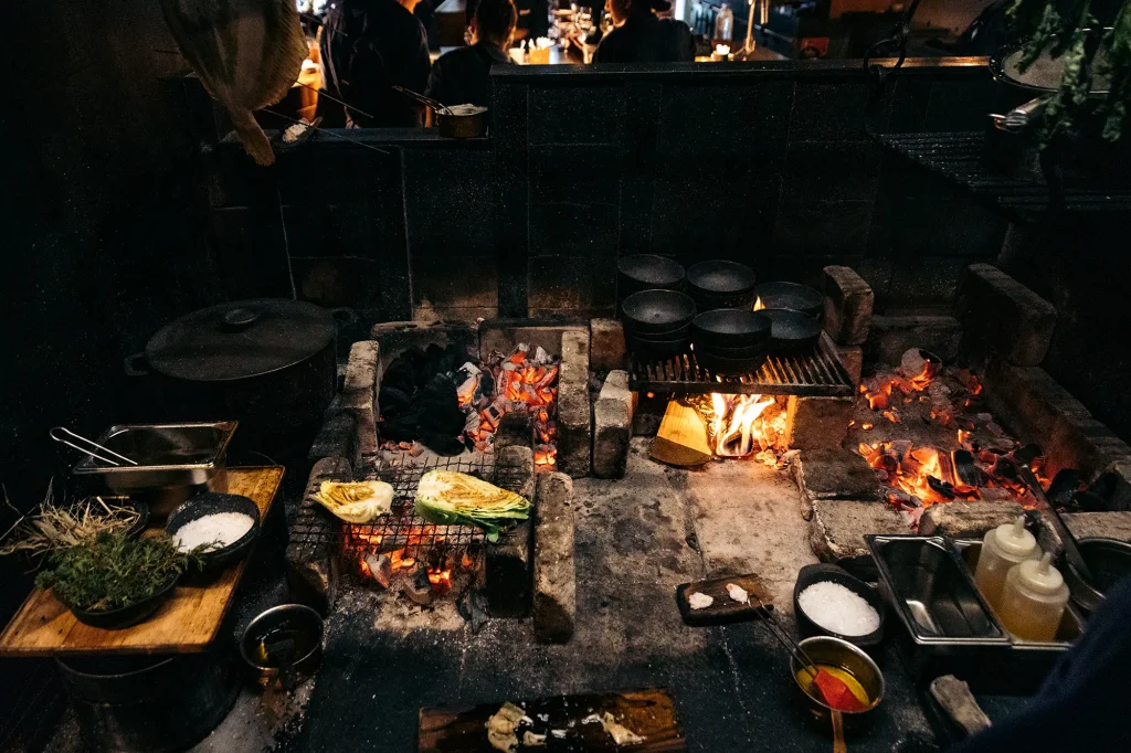 Desde su apertura en 2011, Ekstedt se propuso un gesto radical: prescindir de la electricidad y del gas en la cocina. En su lugar, solo maderas cuidadosamente elegidas —abedul, roble, enebro—, un horno de leña, una estufa de hierro y un fuego abierto que nunca se apaga. Lo que comenzó como un experimento se convirtió en una escuela. Hoy, el restaurante es un punto de referencia mundial para quienes creen que la modernidad puede dialogar con la tradición.