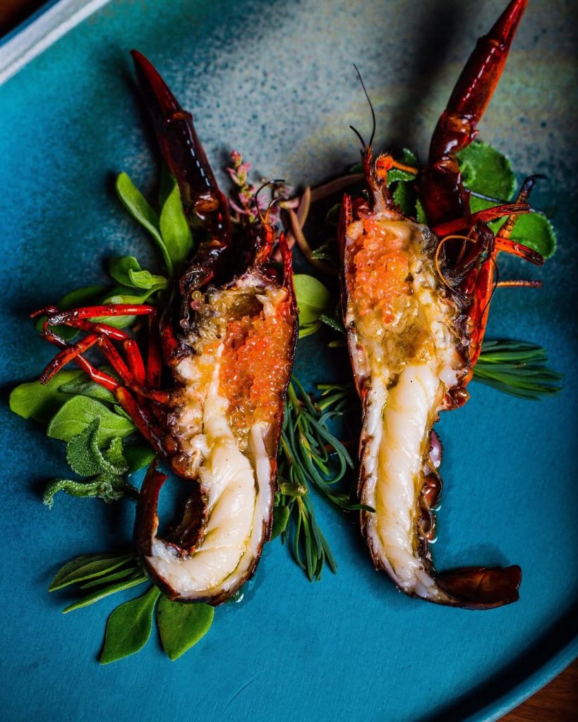 El fuego aquí no discrimina: trata con el mismo respeto al wagyu australiano que a una berenjena local, o al brócoli carbonizado con crema de ajo negro, un plato que ha ganado fama por su simplicidad impecable. El mar también tiene su lenguaje: el bogavante a la parrilla con mantequilla especiada o los langostinos al humo de manzano demuestran que el fuego, cuando se usa con inteligencia, potencia la pureza del producto sin alterarlo.