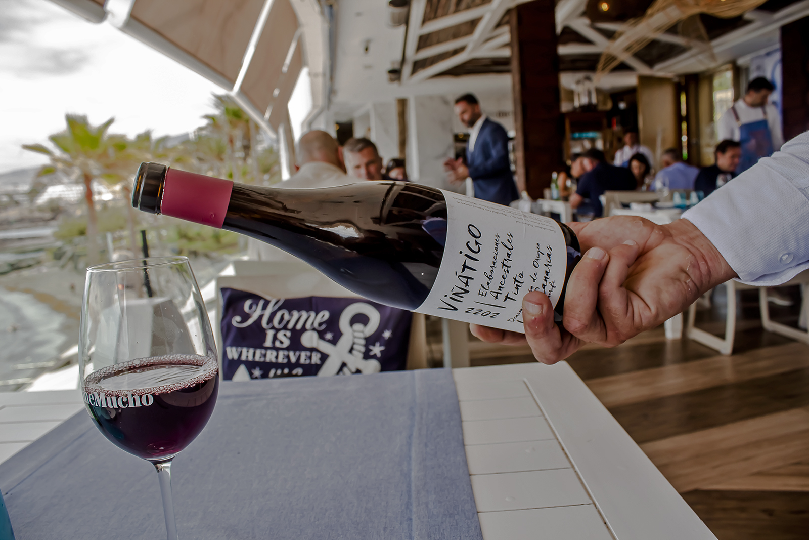 La carta de vinos, precisa y bien pensada, hace justicia a una cocina que exige acompañamiento a la altura. Hay referencias canarias, joyas peninsulares y alguna que otra etiqueta internacional que demuestra criterio sin artificio.
