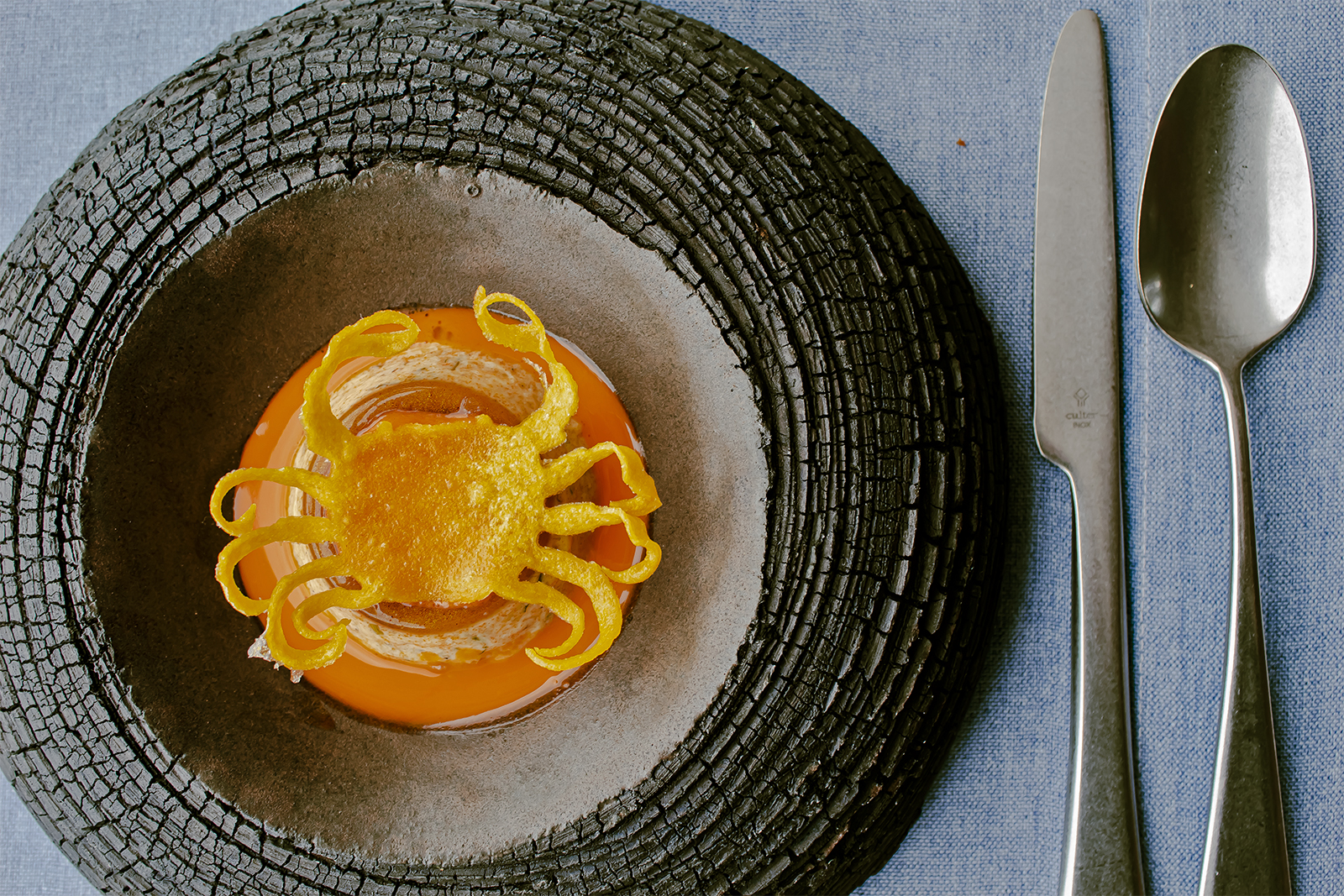 El nombre seduce desde el primer momento y la presentación no defrauda: un guiño visual que remite al postre tradicional, pero que aquí se transforma en una propuesta en la que dos carnes nobles del mar, comparten protagonismo.
