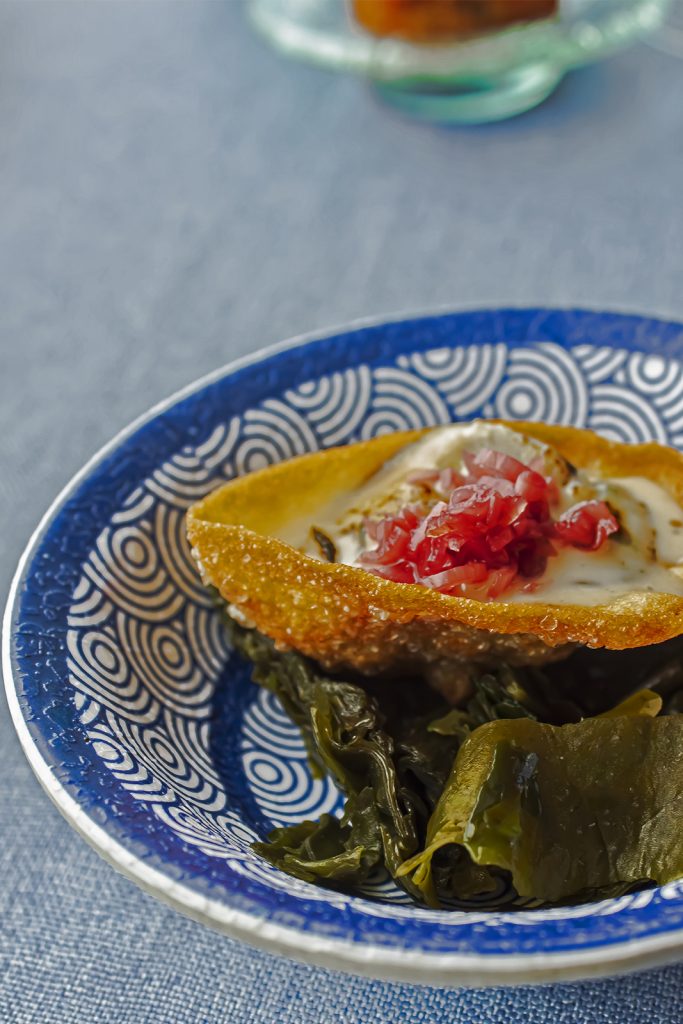 Ostra crujiente con mantequilla de cabra