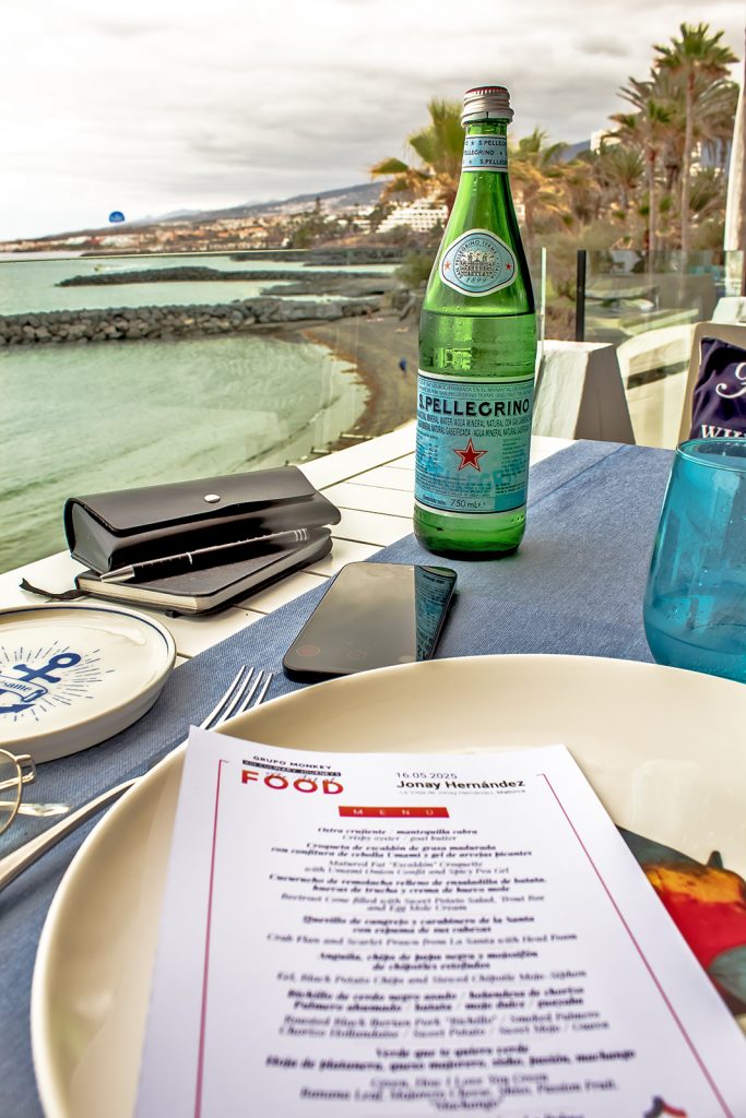 Al llegar, el cielo estaba ligeramente nublado, como si el día aún dudara en mostrarse. Pero con el paso de las horas, el sol fue abriéndose camino y dibujó una cambiante paleta de colores mucho más intensos, como si el entorno respirara junto al comensal. Hay que decirlo ¡qué privilegio de restaurante!. El sonido rítmico del oleaje, el perfume salino del aire y el tacto del sol que aún roza la piel crean una experiencia multisensorial auténtica, donde el mantel no es el centro de transmisión, lo es el momento.