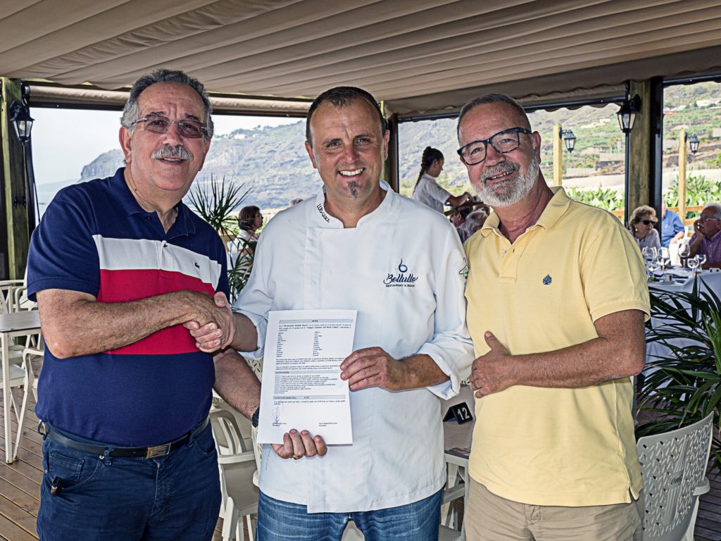 A medida que los 26 Amigos Canarios del Buen Comer íbamos degustando cada uno de los platos y el vino, expresábamos nuestra opinión, asignando una nota, cuya media iría a parar al acta que sería levantada al final de la comida, no exenta de un animado pero riguroso debate, para completar la calificación de cada uno de los puntos incluidos en el orden del día.