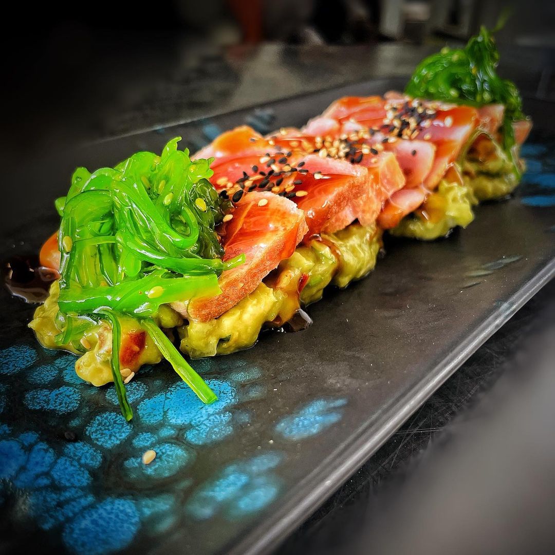 Otro imperdible es su ensalada de inspiración oriental, que destaca por el aliño con salsa ponzu, aportando un equilibrio perfecto entre lo salado, dulce y ácido. La ensalada se acompaña de setas confitadas y jugosas gambas, que añaden texturas y sabores contrastantes. Para quienes buscan un plato con un toque creativo, el Steak tartar cubierto con una fina capa de calamar es una experiencia en sí misma, combinando texturas suaves con notas picantes y agrias de kimchi y pepinillo en vinagre.