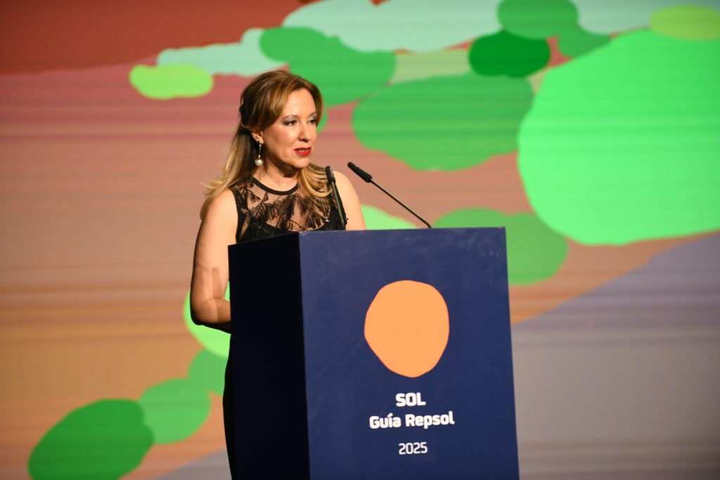 La gala también celebró la entrega de los Premios Sol Sostenible #AlimentosdEspaña, otorgados a chefs comprometidos con la sostenibilidad. Este año los galardonados han sido Ángel León (‘Aponiente’, El Puerto de Santa María, Tres Soles Guía Repsol), Ignacio Echapresto (‘Venta Moncalvillo’, Daroca de Rioja, Dos Soles Guía Repsol), Jordi Esteve (‘Nectari’, Barcelona, Un Sol Guía Repsol) y Pedro Hernández (‘El Duende del Fuego’, Los Llanos, Recomendado Guía Repsol). Los galardones fueron entregados por José Miguel Herrero, director general de la Industria Alimentaria del Ministerio de Agricultura, Pesca y Alimentación; Valero Marín, director general de Cliente de Repsol; Marcos Fraga, director de Comunicación y Marca de Repsol; José Manuel Bermúdez Esparza, alcalde de Santa Cruz de Tenerife, y Dimple Melwani, consejera delegada de Turismo de Tenerife.