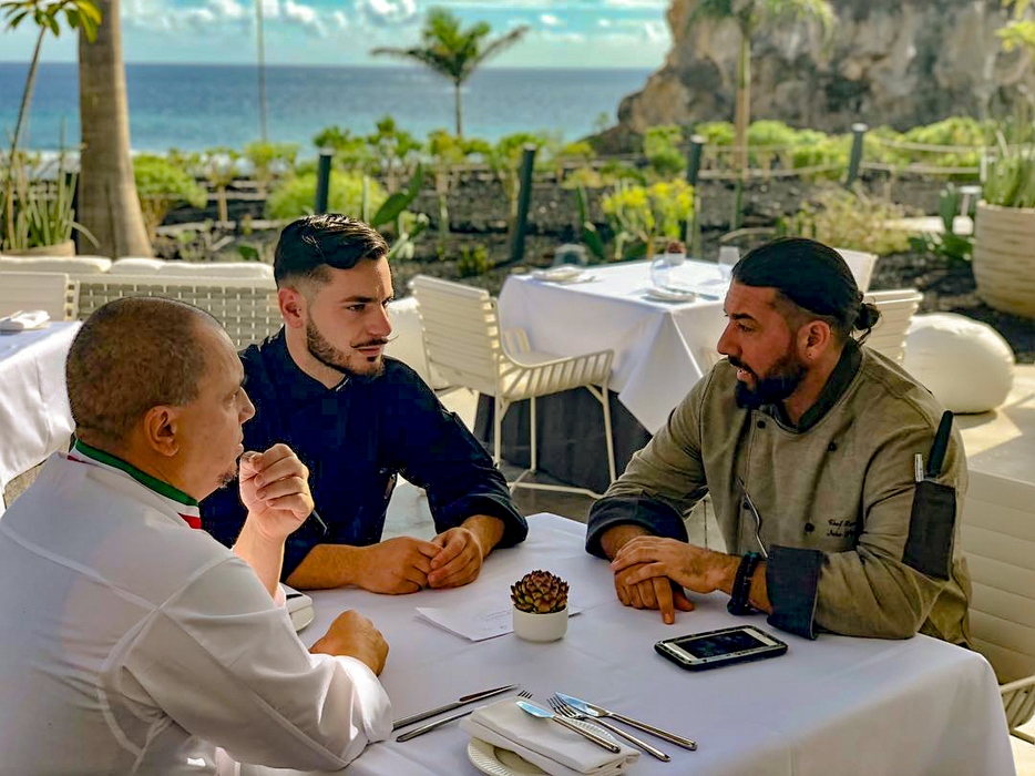 José Garavito –  Bueno, ahora hablemos un poco de tu restaurante, pero déjame mencionar lo espectacular que es, su ubicación dentro de un hotel del sur de Tenerife en el que la piedra natural es parte de su decoración, de su presentación, de la bienvenida, para después llegar a un restaurante donde te atienden a la máxima expresión de una buena y potente sala, profesional y enterada de lo que de su chef  su cocina se refiere, con una terraza al compás de buena música acorde para los buenos sabores italianos, así es donde está este chef. Dime a tu regreso ¿qué ofrecerás como nuevo en tu menú?