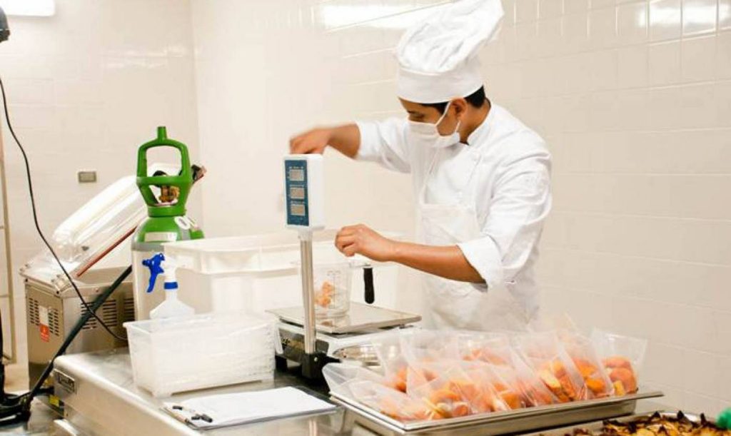 El espacio de preparación previa -donde lavan, cortan, pelan y mezclan los productos- a su vez se divide en: zona de preparación de carne, de preparación de pescado, de preparación de verdura, de preparación de postres,…