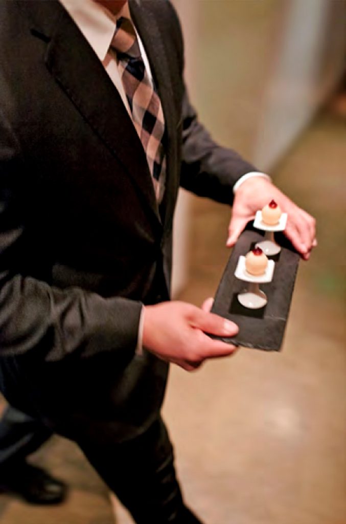 Hablé de la idea con mi pastelero in-dispensable, Juan Contreras, quien sugirió cáscaras de manteca de cacao, y decidimos poner la sidra dentro y mantener el sabor del cassis en la parte superior.