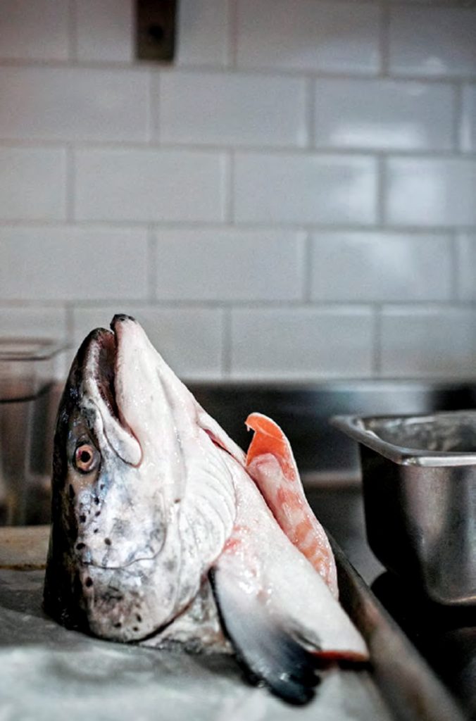 Solía   retirarme y observar cómo los pescadores se movían tan decididamente por el suelo resbaladizo, e imaginaba sus vidas a partir de las líneas en sus rostros. Y por supuesto, vi a mi padre mientras navegaba por el enorme mercado al aire libre, y aprendí de él cómo detectar los mejores pescados, cómo hablar con los pescadores y cómo respetar el mar.