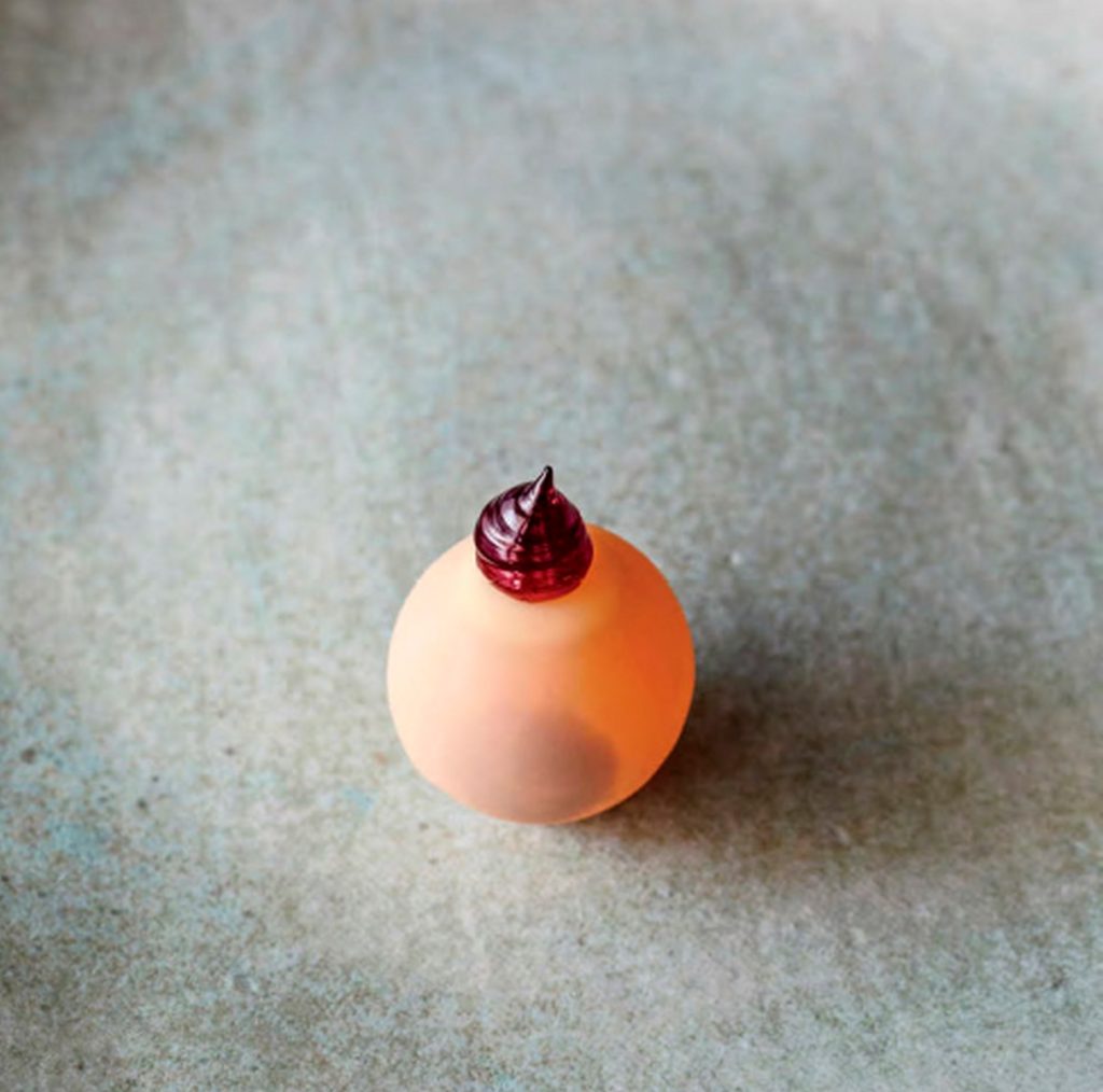 Me acordé del melocotón-champagne que había probado una vez en El Celler de Can Roca; pero yo quería hacer una esfera por su belleza y sencillez.