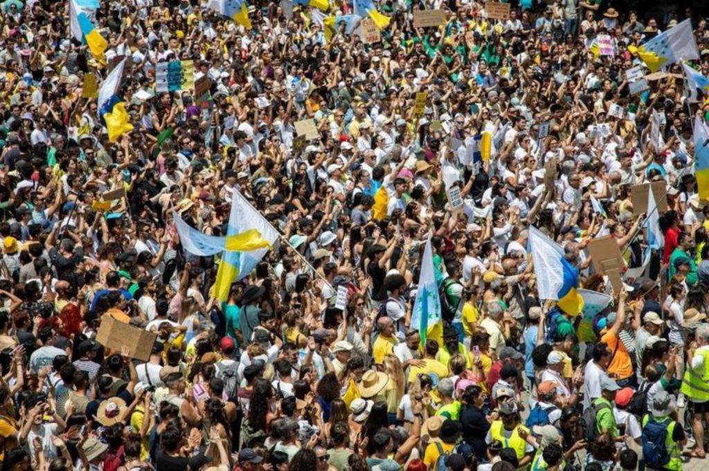 El sábado 20 de abril, decenas de miles de personas en las Islas Canarias, en España, se manifestaron contra un modelo de turismo de masas que, según ellos, está abrumando al archipiélago atlántico.