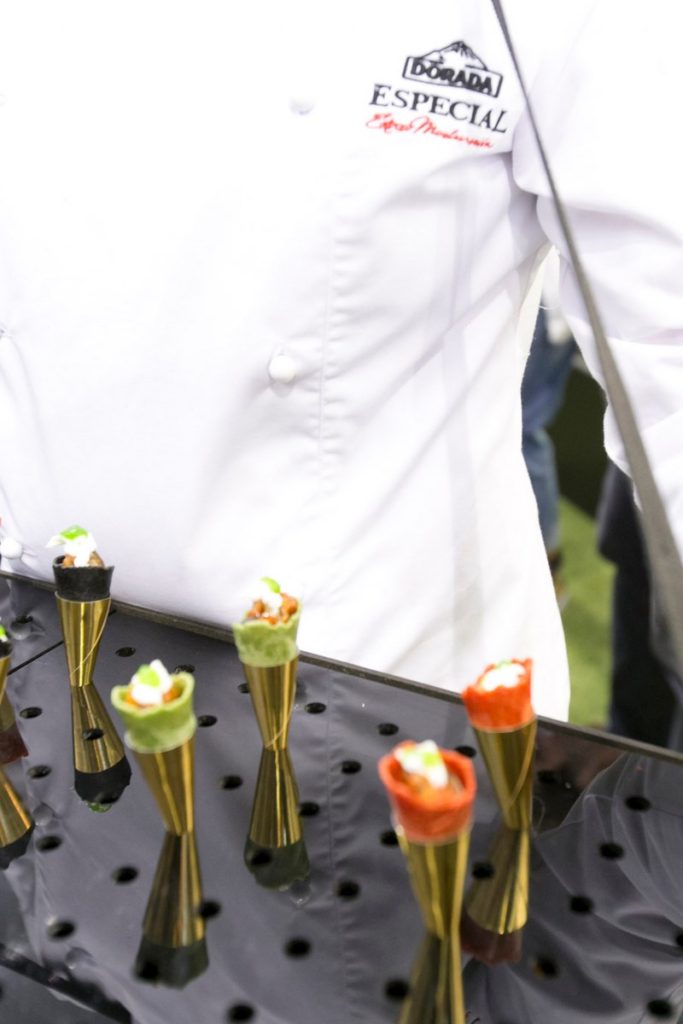 La actividad del stand de Dorada Especial se completó con una degustación gastronómica desarrollada por el chef tinerfeño Carlos Gamonal, embajador de la marca, con su homólogo italiano Niki Pavanelli, responsable del restaurante Il Bocconcino di Olivia del Royal Hideaway Corales Suites.