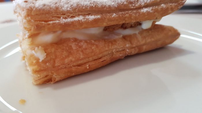 La pastelera culpable, es una chica que la elabora en exclusiva para ellos y es de las mejores que he probado en años, es más, vi personas que solo iban a comer este postre con un buen café en la terraza y esas personas habían reservado “Milhoja”.