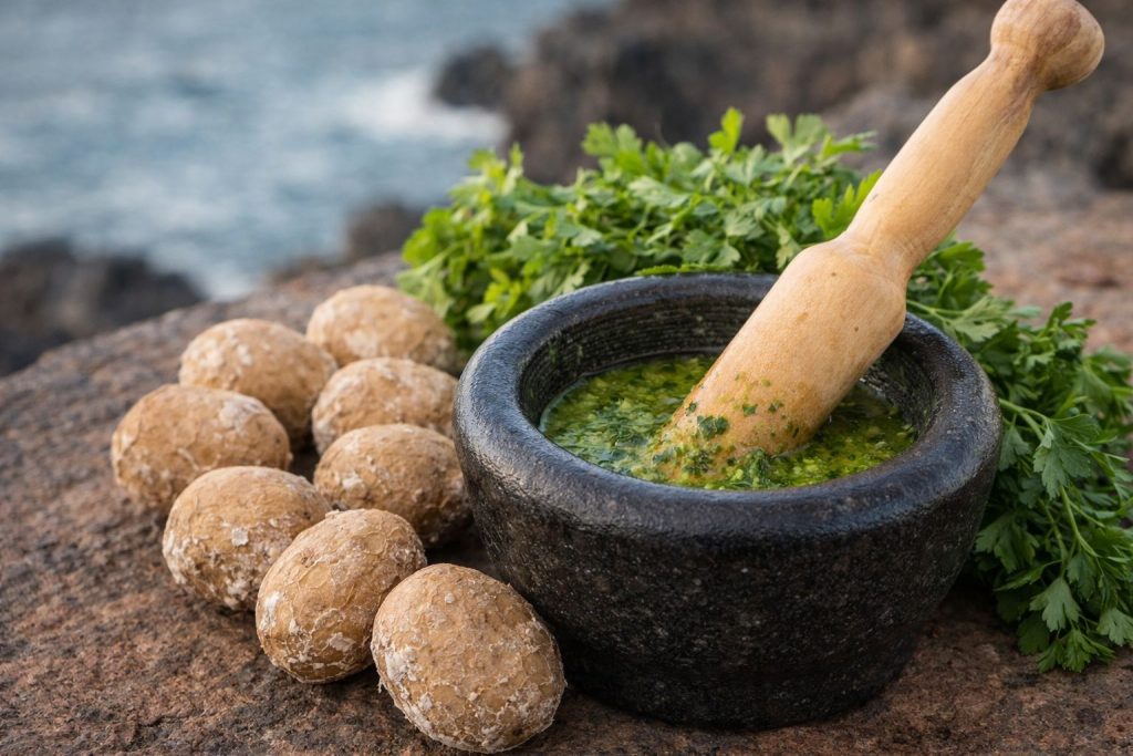 En Canarias se entiende a la primera: un mojo bien hecho no se defiende solo por la lista de ingredientes, sino por cómo fueron tratados en el mortero, por el orden, el ritmo y la paciencia. Se puede tener el mejor ajo, el comino más fresco o una pimienta impecable, pero si no se integran con criterio, el plato se queda correcto… y “correcto” es una palabra peligrosa en gastronomía, porque suele significar “olvidable”.