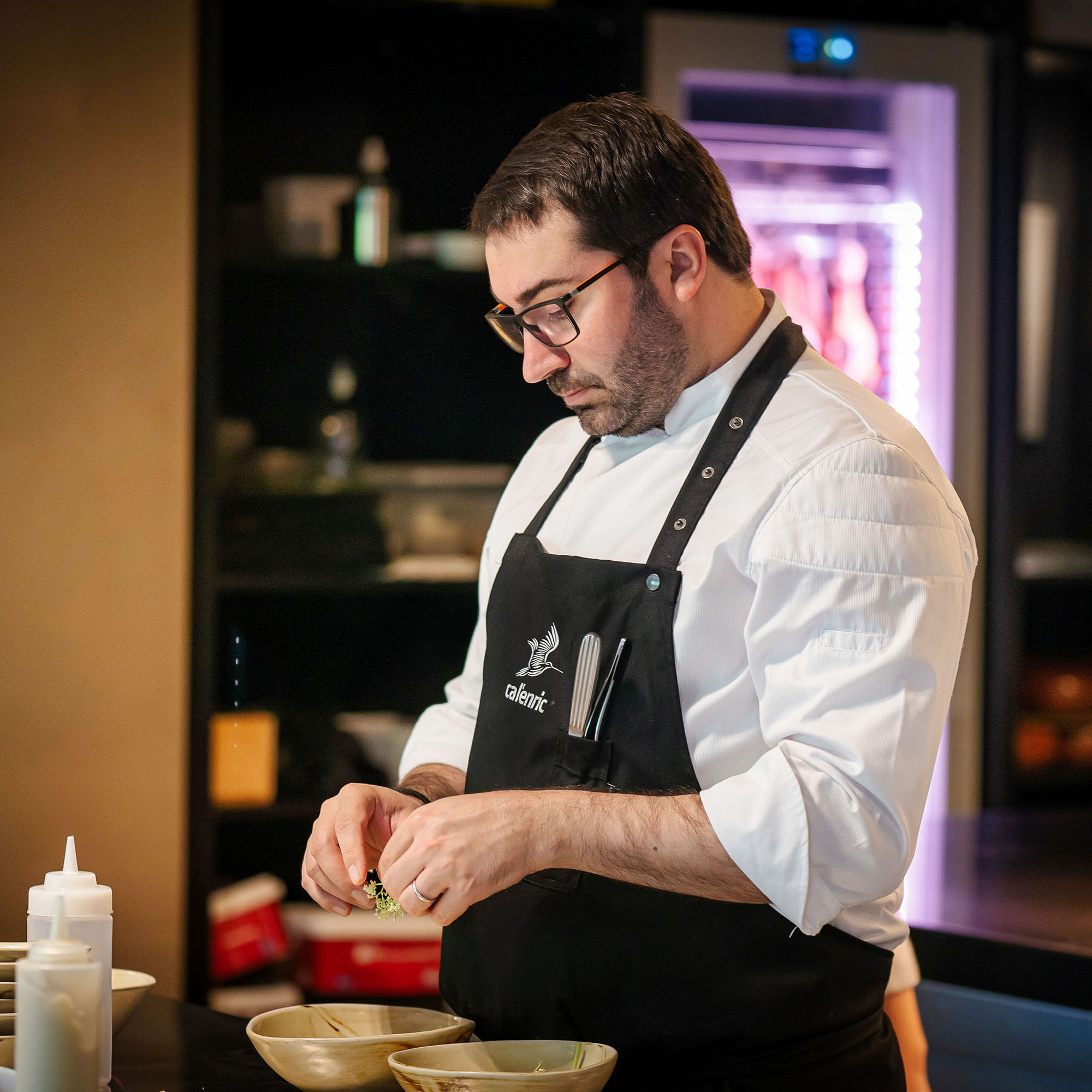 Platos que incluyen corzo, ciervo, faisán, pichón, liebre y elegantes escabeches reflejan la riqueza del entorno y la estacionalidad de la región. Esta cocina gerundense, que combina mar y montaña, ha merecido una estrella Michelin. La carta de Ca’l Enric fluctúa con la estacionalidad, destacando la riqueza del entorno en cada plato.