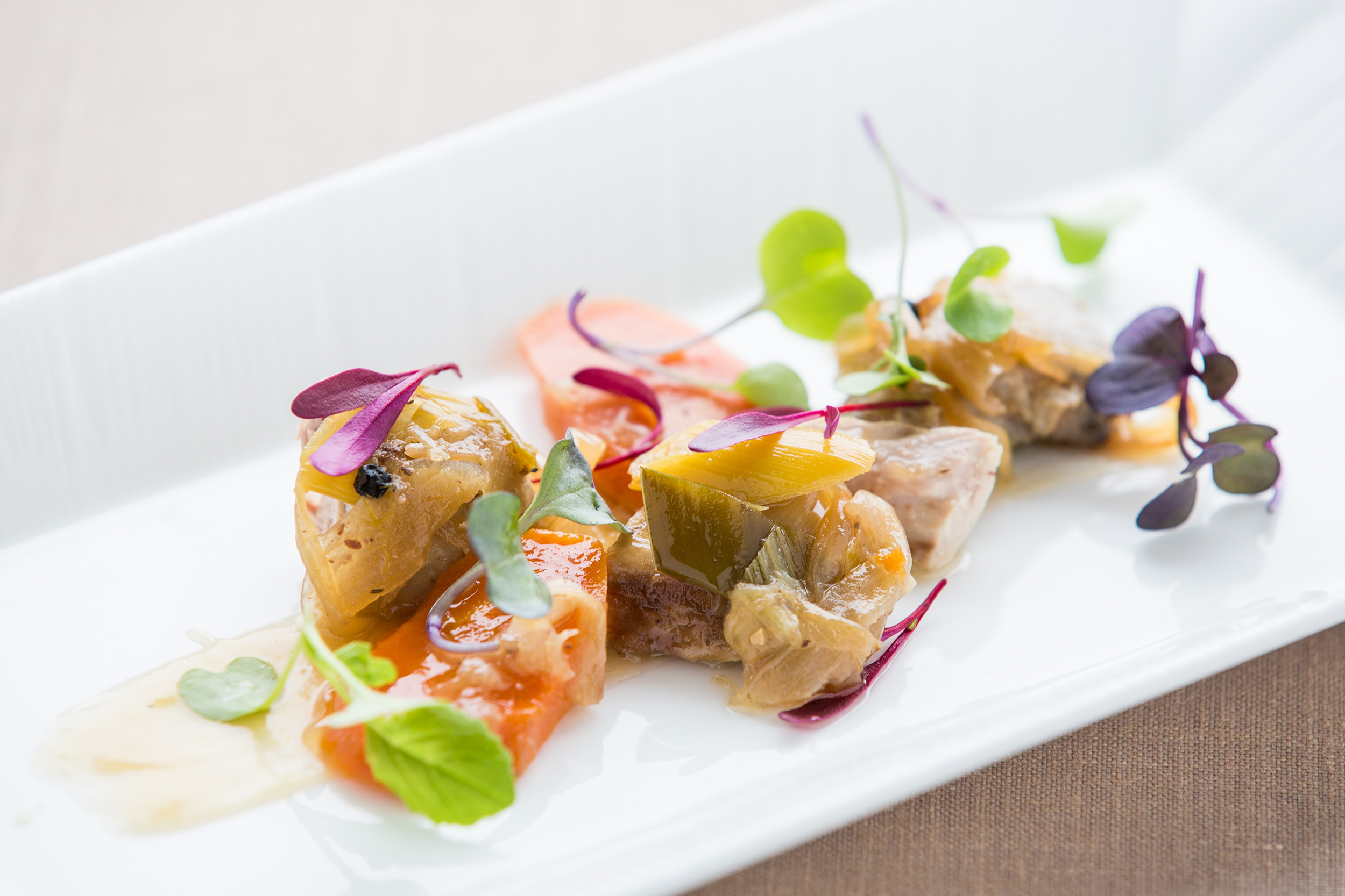La caza, las setas, la miel y otros ingredientes locales forman parte de una variada selección de platos llenos de matices. Aunque se define como un cocinero clásico con una sólida base en la cocina tradicional local, su cocina es fresca y atrevida. El uso de pescado crudo, sabores ahumados, ácidos y vegetales hace que sus creaciones sean ligeras y sabrosas.