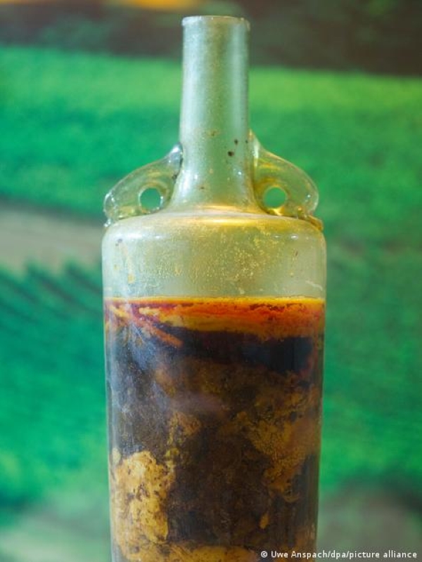 Hasta este descubrimiento, la botella de vino más antigua conocida era una de la bodega de Speyer, descubierta en 1867 durante excavaciones en una tumba romana en la región alemana de Renania-Palatinado. Esta botella, que contiene 1,5 litros de vino y se estima que fue producida entre los años 325 y 359 d.C., tiene más de 1.600 años de antigüedad. La botella se encontró en una tumba que se creía pertenecía a un noble romano, junto con los restos de una mujer y varias otras botellas de vino. Solo una de las botellas estaba completa y contenía su contenido original. El vino se conservó gracias a una mezcla espesa de aceite de oliva y un sello de cera que cerraba la botella.