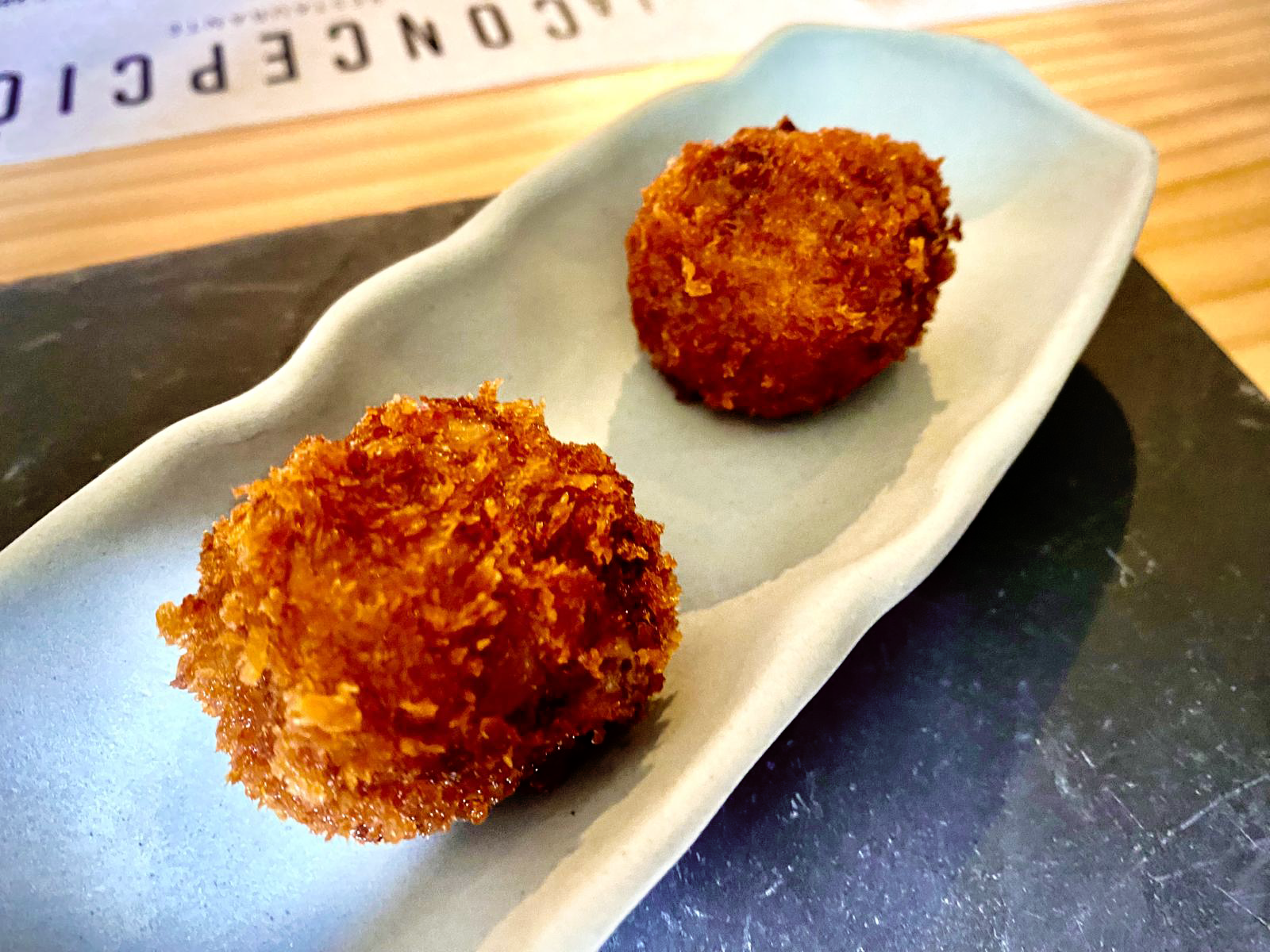 En la idea de que compartir es vivir, la carta ofrece bocados de siempre -jamón ibérico, quesos, bravas, etc.- junto a otros como croquetas de centollo, de sabor delicado; zamburiñas en salsa batayaki, jugoso salteado de mantequilla, ajo tostado y lima o bien mini brioche de langostinos Panko, que se conjuga de manera equilibrada con aguacate, piña salteada con tequila, mayonesa de kimchee, millo y cilantro.