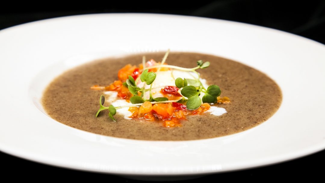 El primer plato es un propuesta que ya había probado de la mano del cocinero en la cena de Pre-Gala al Festival del Cochino Negro celebrada el pasado mes de octubre en el Hotel Laguna Nivaria. Pero ¡no hay nada como cocinar en casa!, si en la cena este plato convenció a los asistentes, en Escencias, el Chef logró convencer a este prescriptor… una crema colmada de sabores reconocibles.