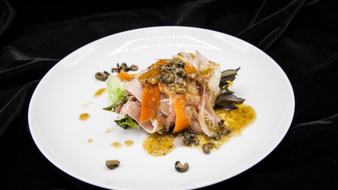 Una propuesta con la ‘Bondiola de cochino’ como ingrediente central ¡si!, esa charcutería conformada por la parte cercana del cuello del cerdo que, consiste en un prensado de carne y grasa; ha estado presente en un mézclum de hojas, lapas de Lanzarote y burgados en una vinagreta natural; juntos conforman un plato que te satisface en todo su contexto; frescor, sabor del cochino; hay que reconocerlo: la preparación del chef realzó esta parte tan noble del animal, además, cambió el concepto de un plato tradicionalmente presentado con pata canaria.
