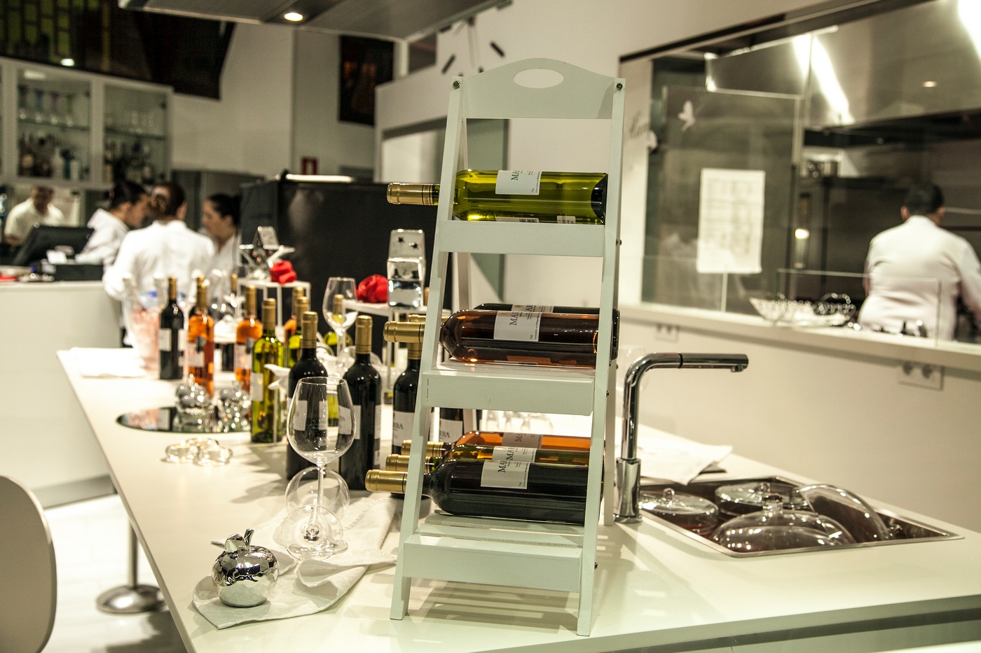 Un montaje de sala muy especial, lleno de buen gusto, sin recargar y con un agradable protagonismo de los blancos que aportan elegancia. Esther Farrais ha conseguido que en un pequeño espacio, uno se sienta cómodo y agradable en la velada.