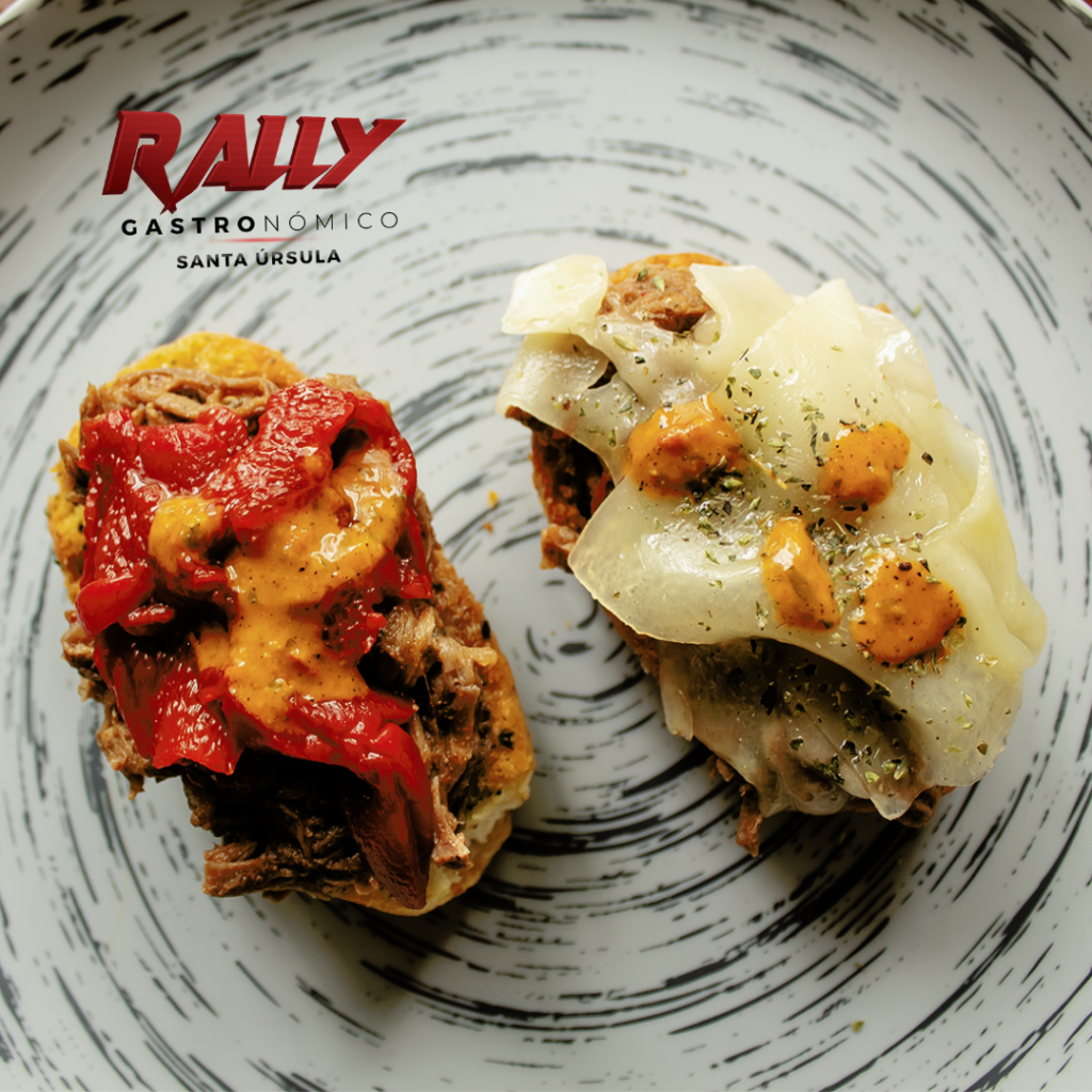 Ya para terminar esta ruta por el Rally, “Bodegón Arte” nos sorprendió con una “Falsa papa rellena de cerdo y confitura de manzana con salsa de queso y soja”, una tapa con muchas horas de preparación. Asimismo, Taberna Remango abrió el apetito con una tortilla canaria, una versión de la española, pero con papas canarias y gofio, y dos montaditos de mechada con pimientos de piquillo asados.