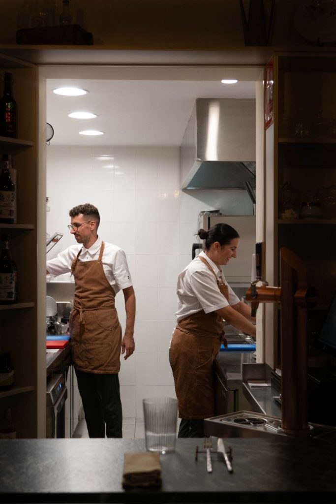 Sus platos agrupan texturas, temperaturas y sabores entrelazados con equilibrio. Las sopas frías, los salpicones, picadillos y pucheros les permiten demostrar su imaginación y dominio técnico. Cocina joven que expresa mucho con pocos elementos.