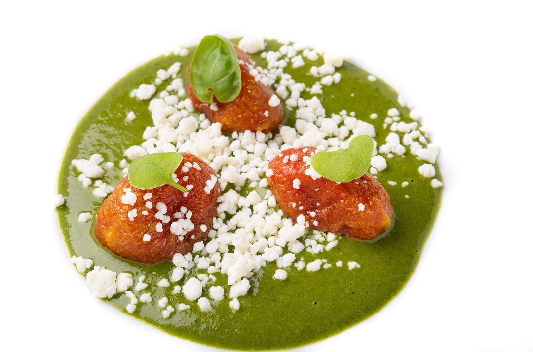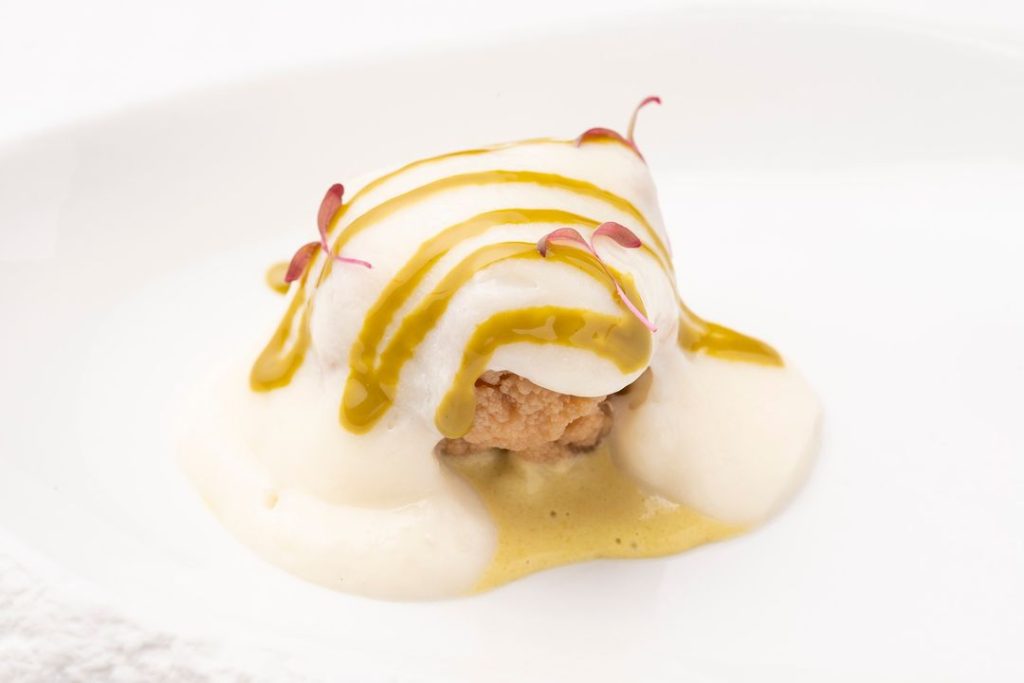 Aplicar las meticulosas y elegantes técnicas de la pastelería a los ingredientes se ha convertido en su enfoque principal. El resultado es asombroso y se nota claramente en cada plato que sale de su cocina. Los sabores se respetan y realzan, la presentación es impecable y cada bocado está lleno de un sabor pronunciado que habla de las raíces de la región y su profunda sensibilidad.
