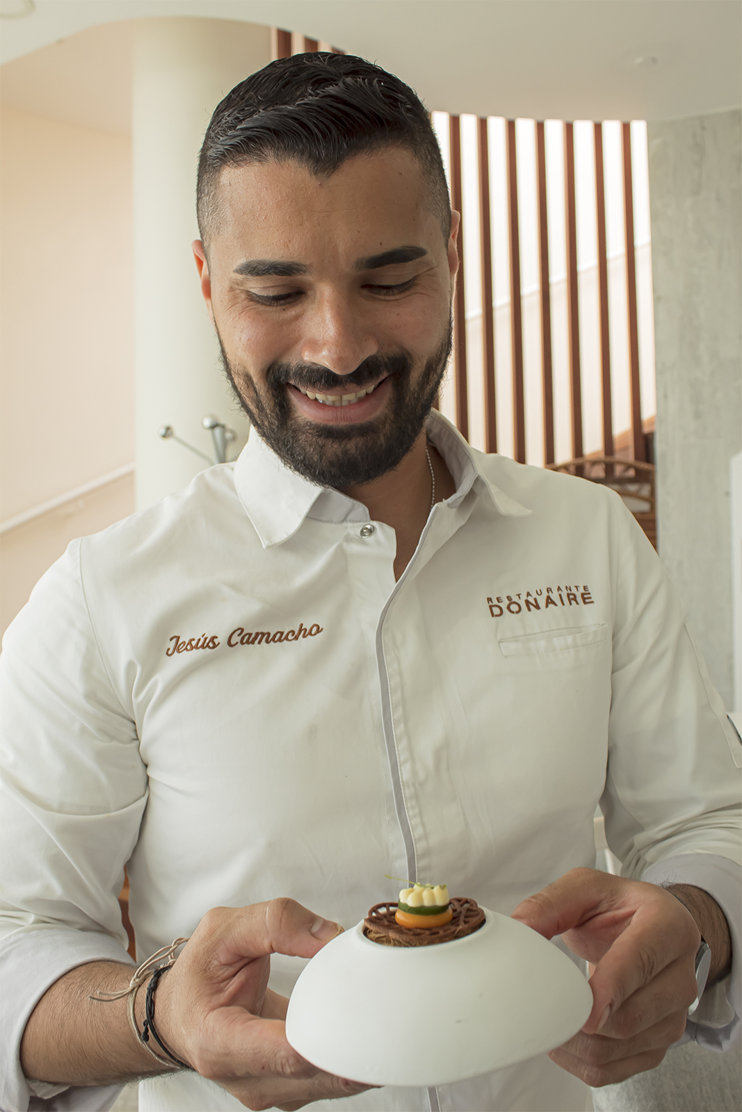 En el presente, Jesús Camacho se encuentra al mando de la cocina en el Restaurante Donaire, donde ha emprendido una nueva etapa en su vida profesional. Esta oportunidad le permite fusionar su amor por la pastelería con su pasión por la cocina. Una dualidad que no solo le otorga una perspectiva única, sino que también le permite crear una filosofía gastronómica que transformará por completo el restaurante.