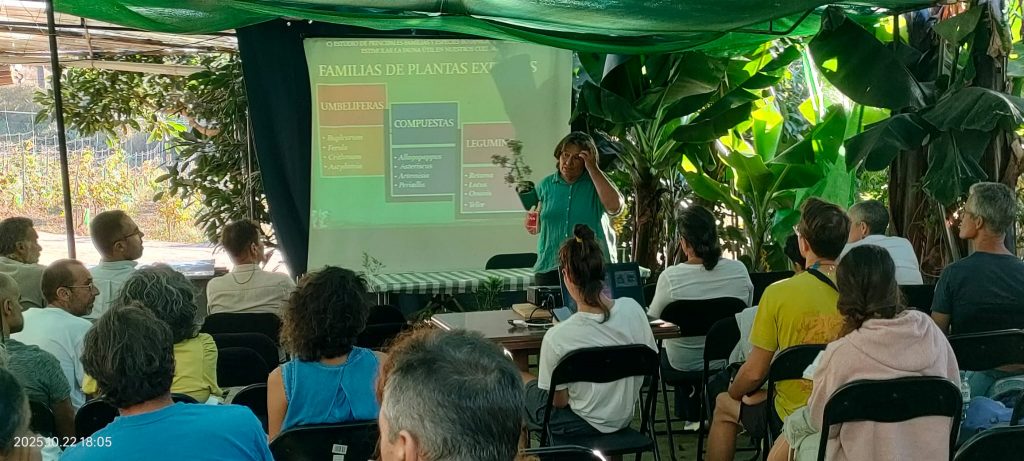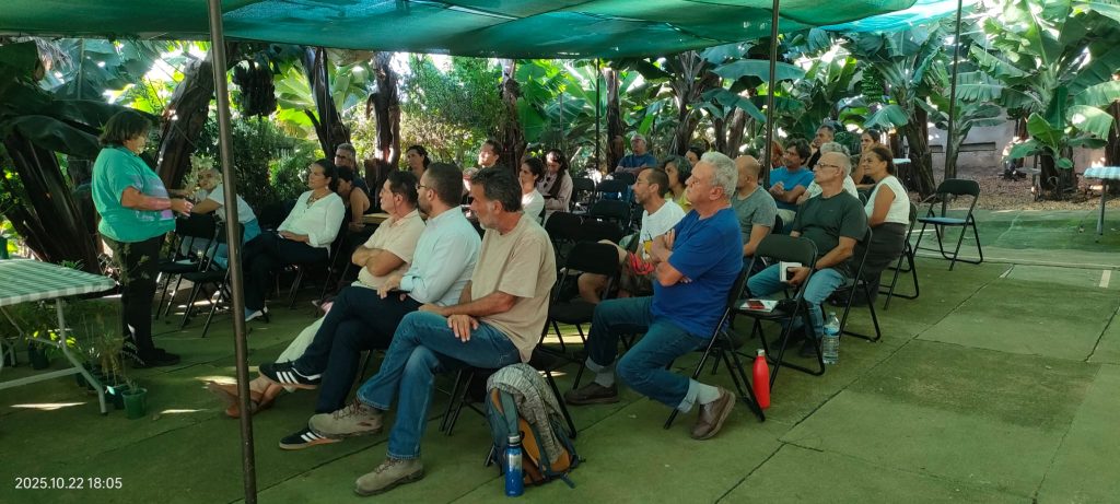 Durante la jornada inaugural, más de veinte asistentes participaron en la ponencia de Isabel Hidalgo, viverista especializada en flora canaria, quien presentó “Control biológico por conservación”, una charla centrada en estrategias naturales para el manejo de plagas, demostrando cómo la biodiversidad puede convertirse en la mejor aliada del agricultor.