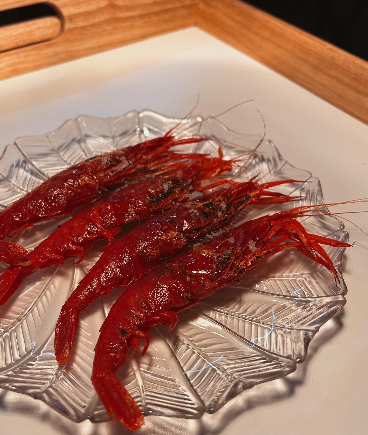 El mar llega a la mesa en forma de Gamba Roja de Denia a la brasa, embarrada con grasa de chuleta madurada. Este marisco, de por sí exquisito, se eleva a otro nivel gracias a la técnica de la brasa y al toque de grasa de chuleta, que le aporta un sabor y una textura únicos. No se puede dejar de mencionar la cabeza de la gamba, que es un verdadero manjar que se debe saborear hasta el último bocado.