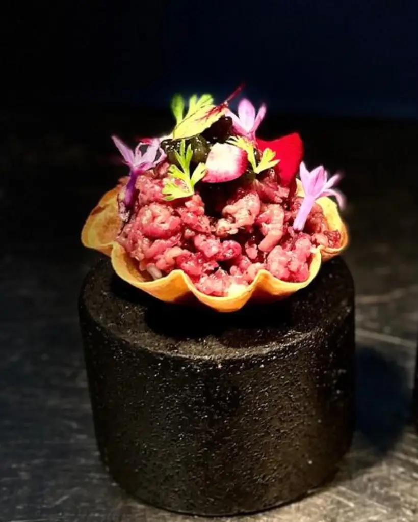 Este refinamiento de la cocina tradicional de alguna manera rompe con algunos tópicos, desde una carta que ofrece crudos (ostras, tiraditos, carpaccio o tartar); bocados (aguacate, almeja, carabinero); los tacos (entraña de Wagyu a la parrilla, picaña asada en brasa, costilla de cerdo; brocheta de pulpo, cangrejo real); carnes (lomo alto de Wagyu o costillar de ternera) y pescados (lubina a la brasa y ventresca de atún rojo) y un final dulce de Chocolate con churros: Frambuesas con mezcal y Plátano en texturas con caramelo de helado salado.