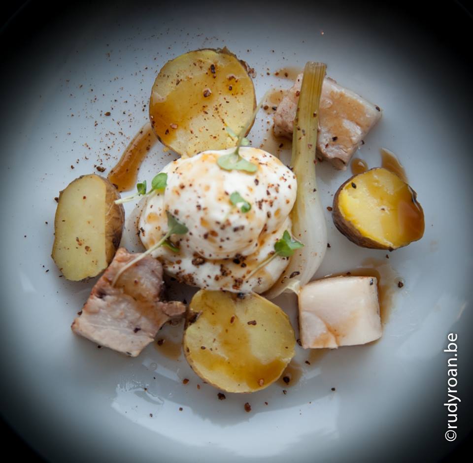 Rubén Cabrera, Chef que, ha sabido mantenerse en su línea de alta gastronomía sacando el mejor provecho a los productos canarios y combinándolos con géneros de otras partes del mundo, ha sido el encargado de dar apertura a la fiesta gastronómica belga con sus ‘Papas Viudas 2.5’, versión de un plato muy arraigado a en su familia. ‘Hemos usado nuestras papas negras y cochino negro como base del plato al que le hemos dado un aporte graso con queso canario curado en salsa, demostrando, a un público como el belga, el mundo de posibilidades que tienen nuestros productos en la alta cocina’, añade el Chef.