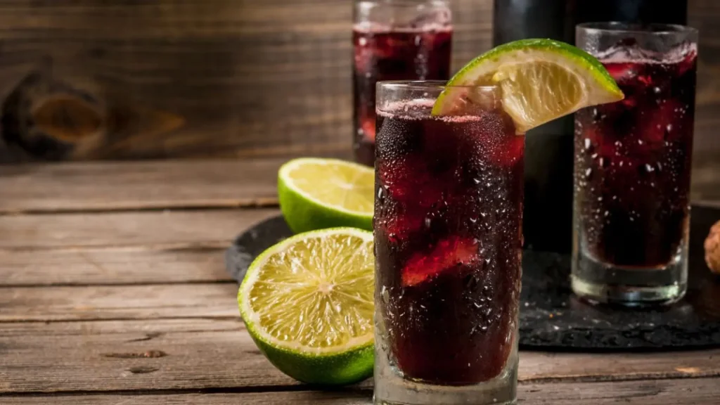 - Ingredientes: Vino tinto y gaseosa (o limón concentrado) en partes iguales, con hielo.