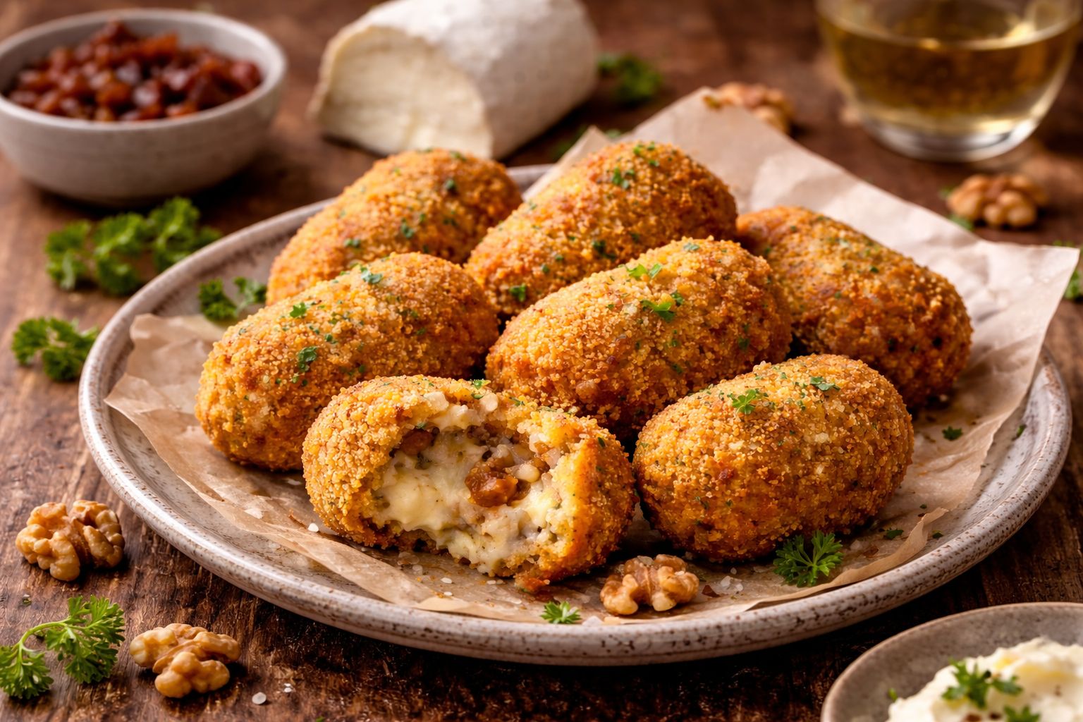 Croquetas de Queso de Cabra con Cebolla Caramelizada y Nueces