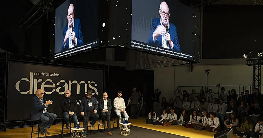Relevo generacional: “Sí, hay futuro”. En la mesa redonda de Dreams #spainfoodtechnation ‘¿Hay alguien ahí?’, moderada por el periodista Ignacio Medina, Toño Pérez, Albert Adrià y Sacha Hormaechea -junto a Pol Contreras– coincidieron en que la alta cocina española tiene relevo y futuro, algo que subrayó el auditorio joven que llenó Dreams #Spainfoodtechnation Toño Pérez reivindicó el recorrido de Atrio y la importancia del vínculo con el territorio, mientras José Polo destacó que los jóvenes parten hoy con una formación y oportunidades que ellos no tuvieron.