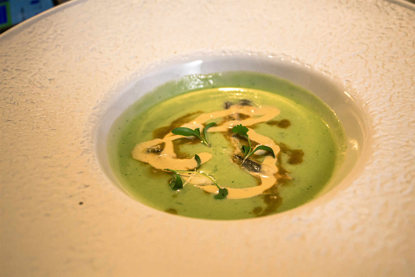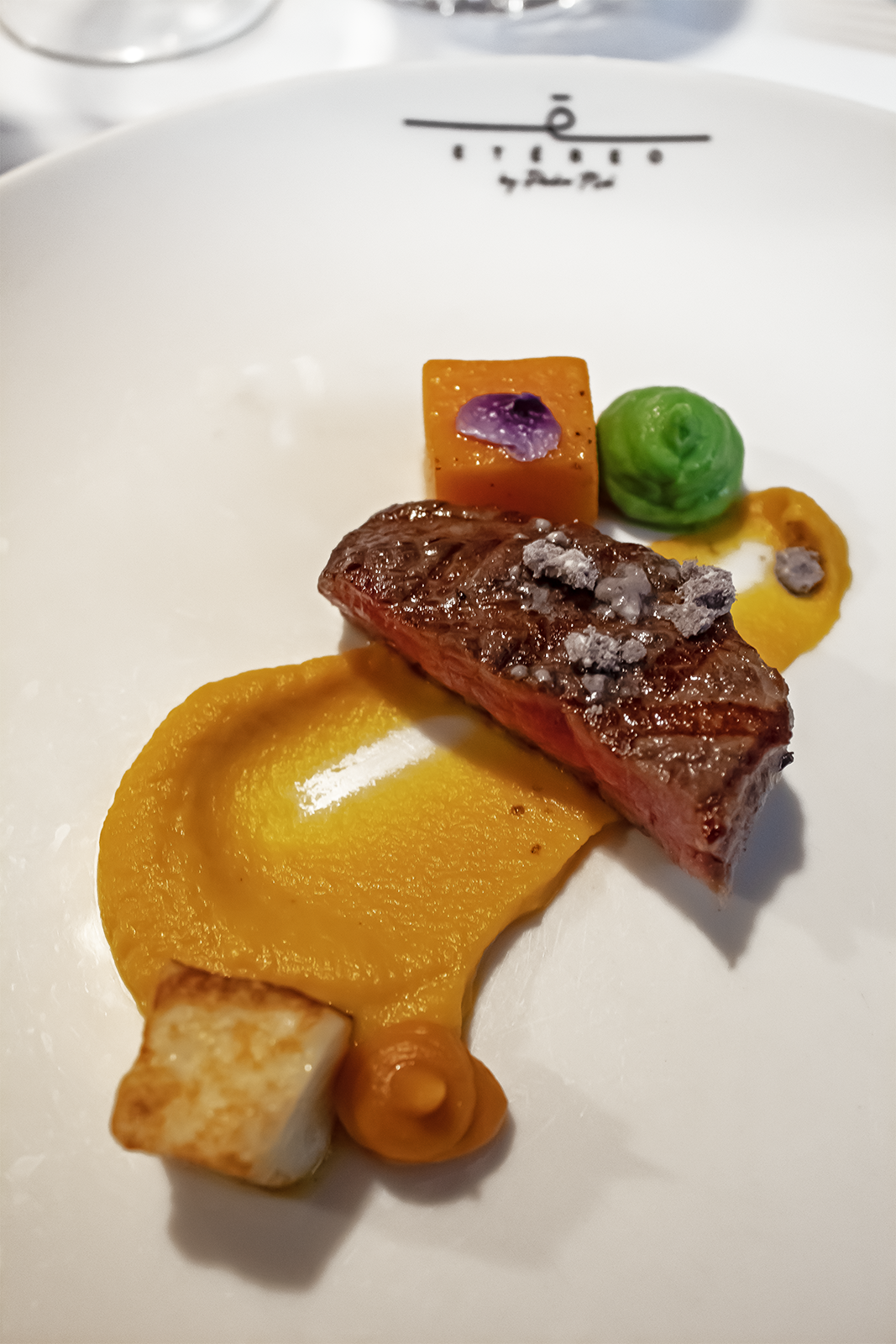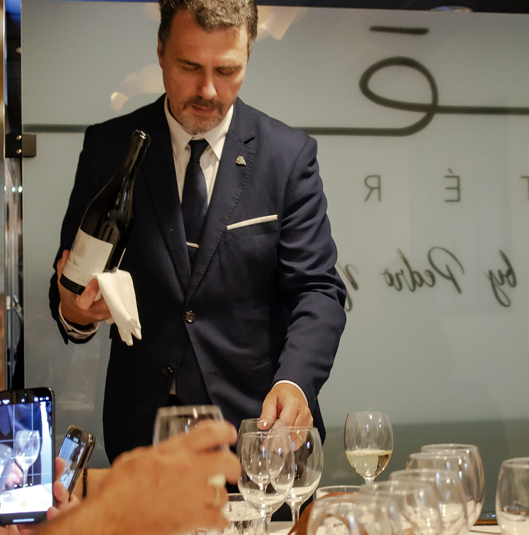 Mientras los asistentes disfrutaban de esta apertura, la atmósfera se llenaba de anticipación para el siguiente acto. El servicio de sala, a cargo del tándem formado por Miguel Otero Prol y Olga Esanu, directora de Sala de Etéreo, era un ballet de precisión. Otero y Esanu, con su profesionalismo y atención meticulosa al detalle, se movían con gracia y eficiencia, asegurándose de que cada aspecto del evento fuera cuidado al máximo. Los comensales, inmersos en la experiencia, se sentían como invitados de honor. Esta dedicación mostraba la importancia de un espacio donde la atención al detalle y el cuidado del cliente son esenciales para garantizar una experiencia completa