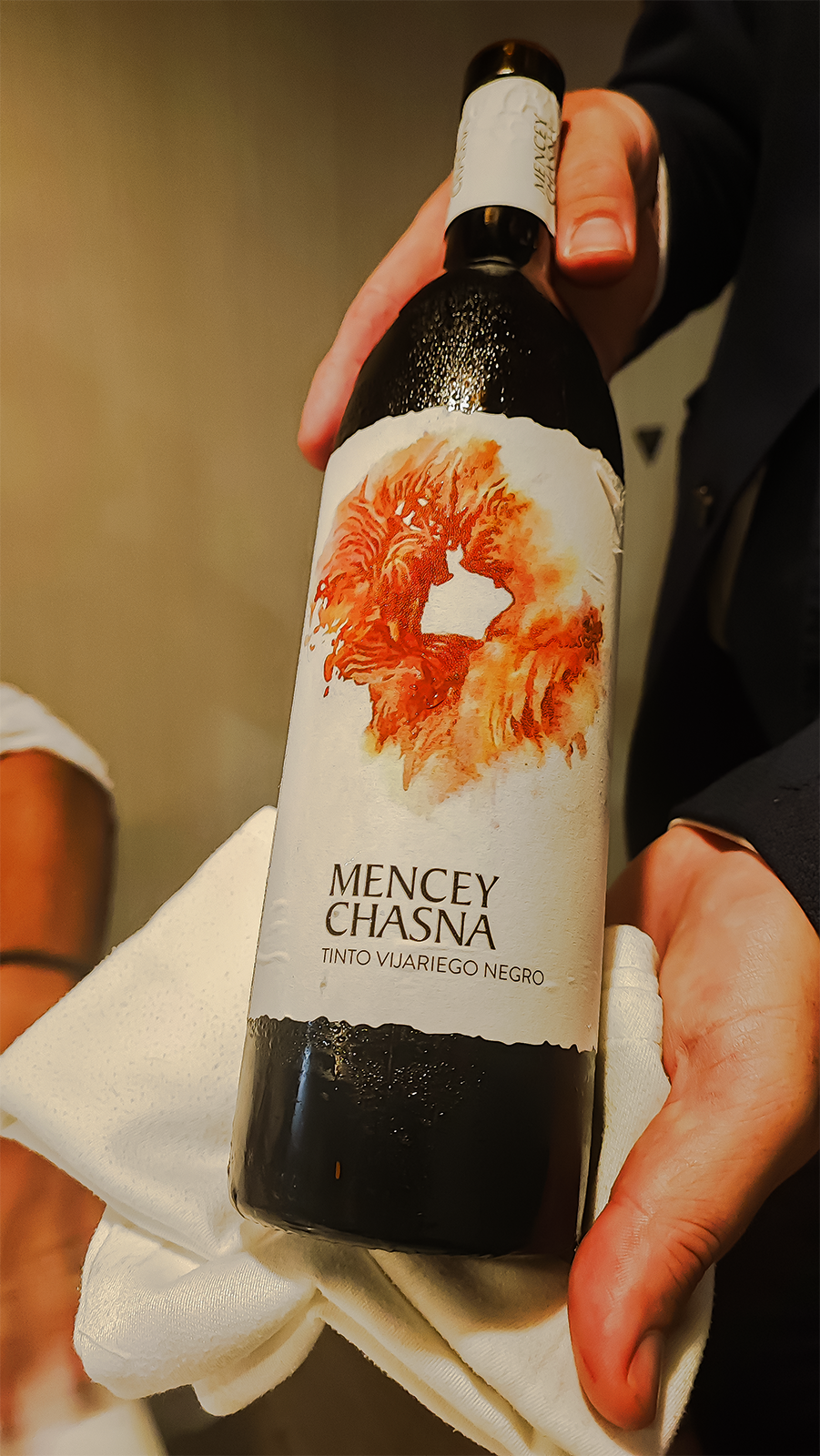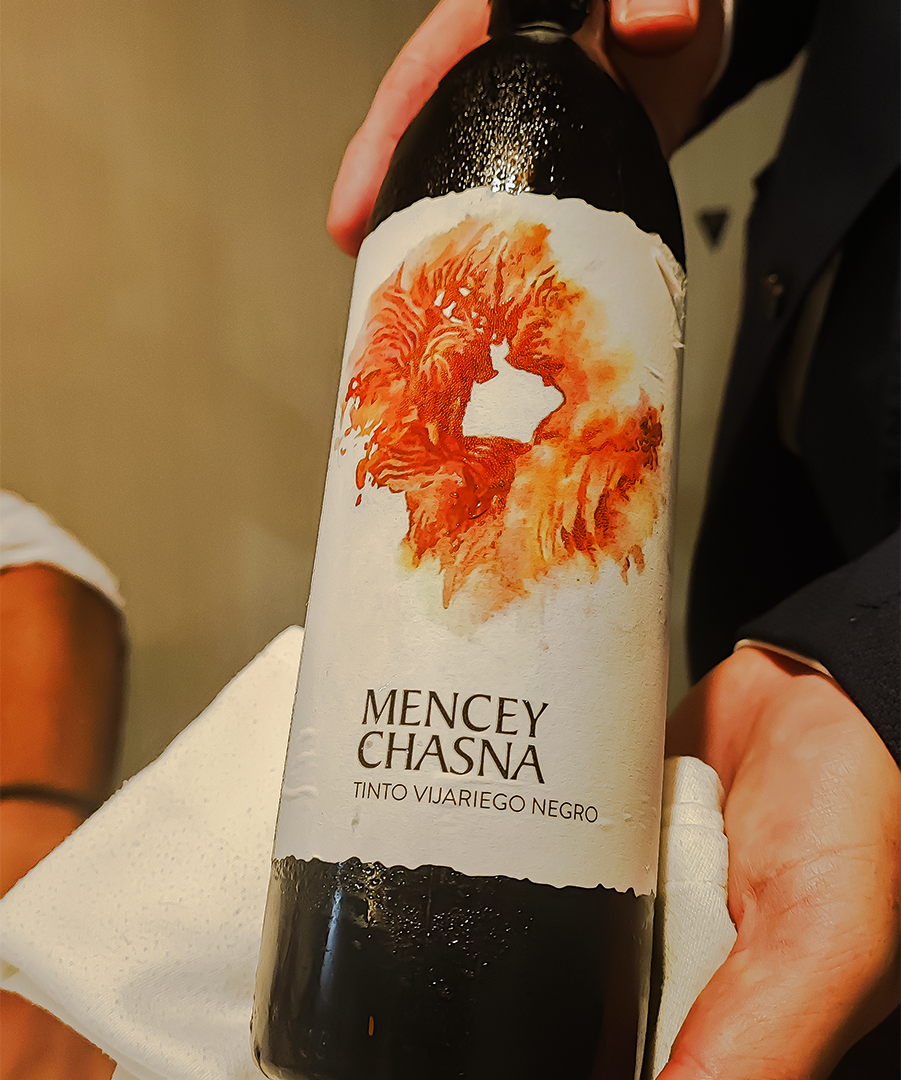 El maridaje del Flor de Chasna Blanco Selección Premium con los platos de Andrés Madrigal y Pedro Nel fue un verdadero acierto del sumiller Aldo Santilli, del restaurante La Vieja. Santilli, encargado de crear el maridaje del evento, puso de manifiesto sus habilidades y conocimiento sobresaliente en cada elección. El agua de tomate, pepino y pistacho con mejillones escabechados y stracciatella de Madrigal, con su frescura y complejidad, se veía realzada por las notas afrutadas y florales del vino. La acidez del Flor de Chasna equilibraba la riqueza de la stracciatella y los mejillones, creando una armonía perfecta que evidenciaba la meticulosidad y pasión de Santilli en su selección.