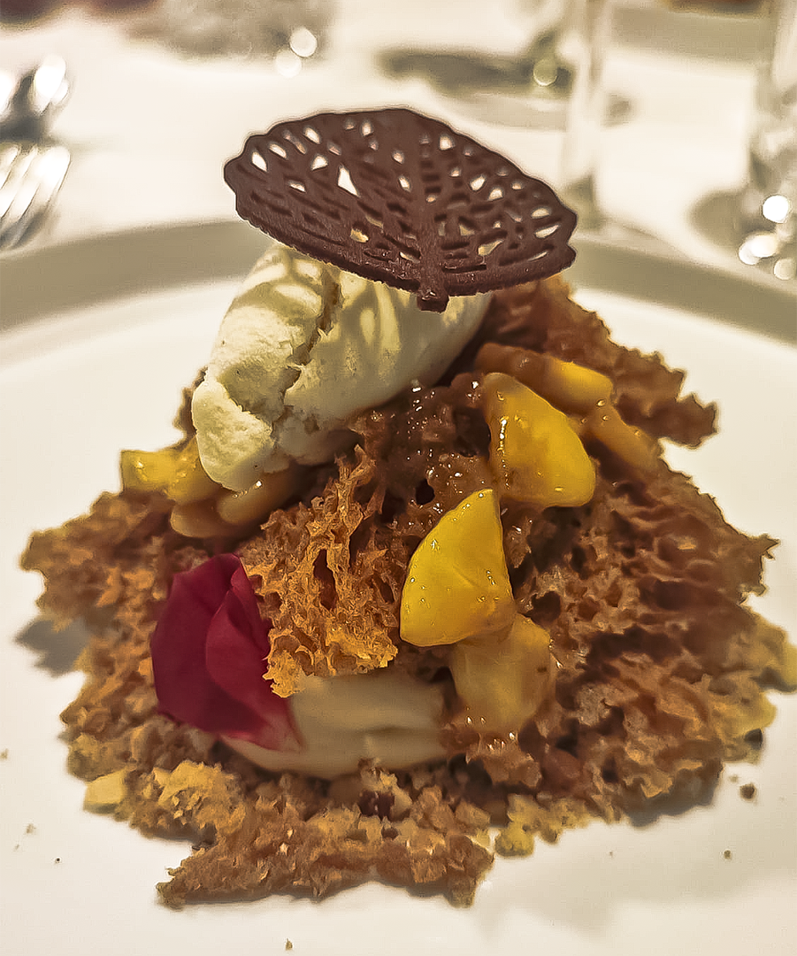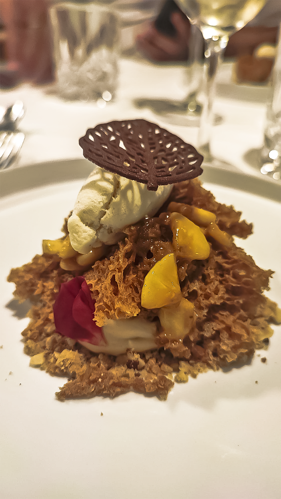 En conjunto, el elegante maridaje entre el esponjoso de avellana, plátano con caramelo y helado de plátano y el Altos de Tr3vejos Brut Nature ofreció un post-gusto largo a una noche memorable, dejando a los comensales con una impresión duradera en el paladar.